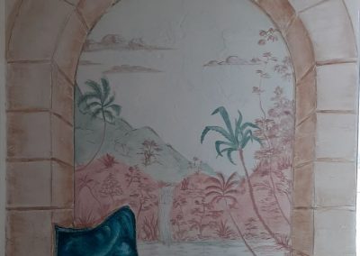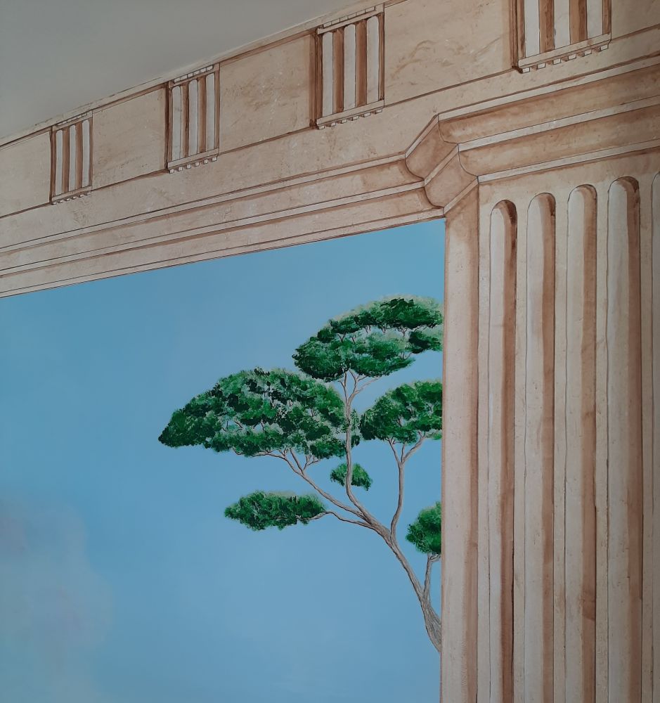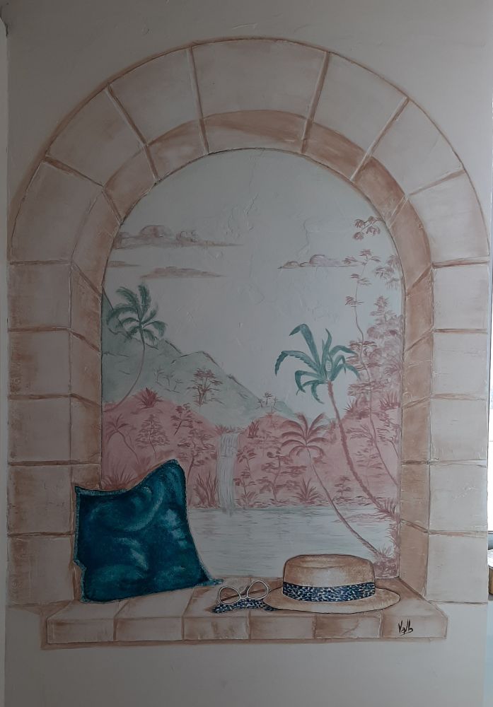 - Trompe-l’œil : des fenêtres sur des paysages imaginaires ou des scènes réalistes, qui agrandissent l’espace et apportent une touche d’originalité.