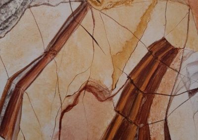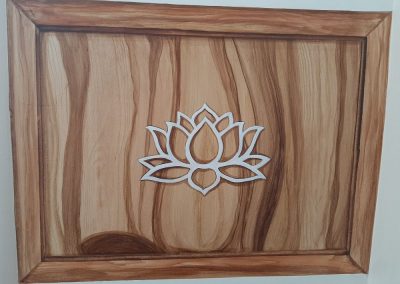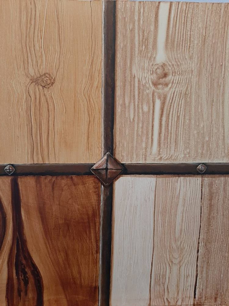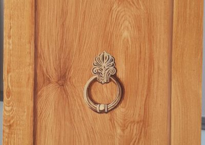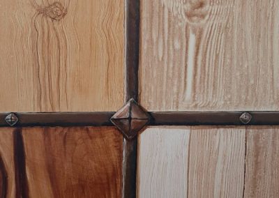 Grâce à la technique du faux bois, je recrée l’apparence de différentes essences, avec leurs veines, leurs nœuds, leur profondeur…