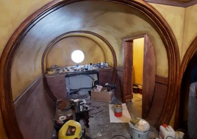 J’ai eu la chance de peindre et mettre en ambiance une véritable maison de Hobbit, inspirée des films cultes du Seigneur des Anneaux.