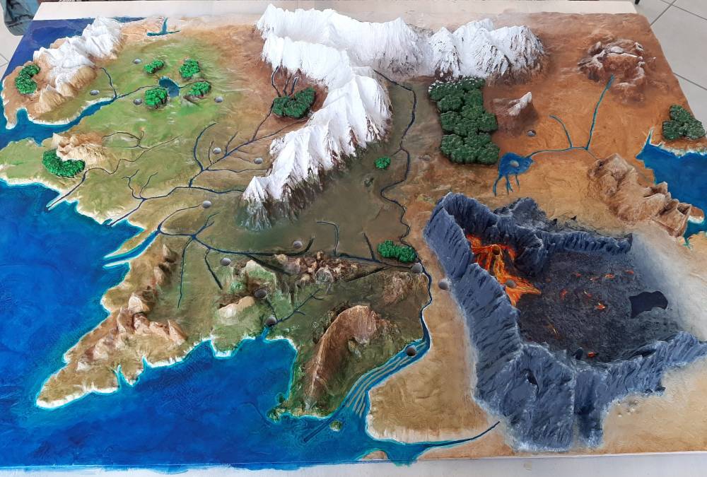 En complément, j’ai également peint une maquette en relief de la Terre du Milieu, pièce maîtresse du jeu.